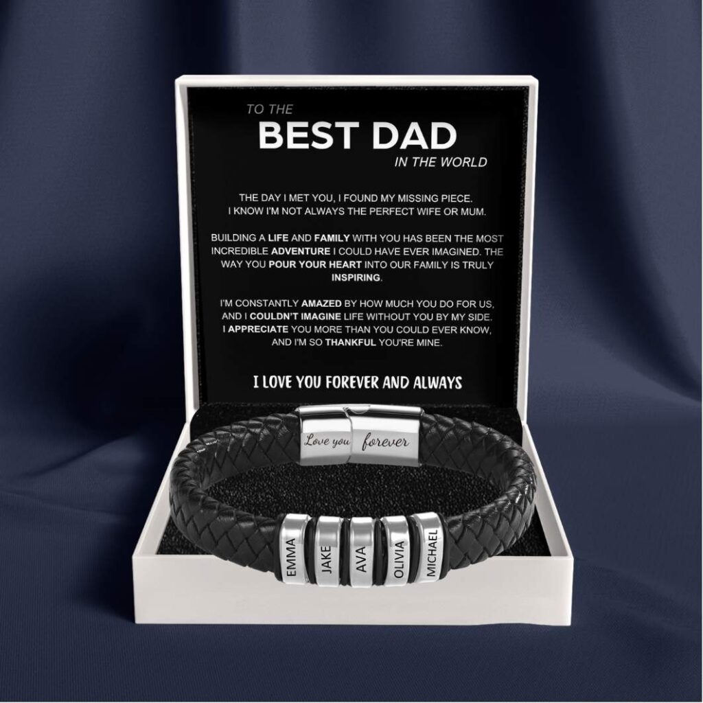 Imagine his joy as he opens a bracelet engraved with the names of those he holds closest. Each name etched into the delicate design serves as a constant reminder of the unbreakable bond you share.
